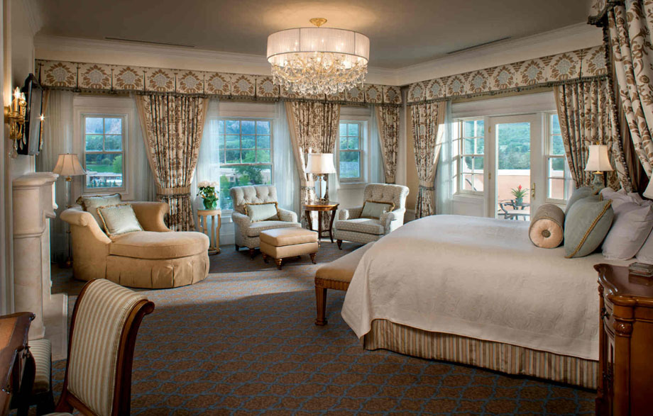 Para la construcción del hotel contrató artesanos europeos que crearon frescos y azulejos ornamentados, trajo accesorios de mármol rosa y otros elementos de diseño.  Además se importó un pub inglés del siglo XVII llamado “La Abeja de Oro”, y la viuda de Penrose, Julie, fundó en 1947  el Carriage House Museum, un museo de autos antiguos.  Se llega al hotel mediante una carretera sólo para el Hotel, en forma de bucle, de una milla de extensión, y el hotel posee también un lago privado.  A cien metros al norte del hotel se encuentra el Museo Mundial del Patinaje Artístico y Salón de la Fama, un homenaje a la historia del patinaje sobre hielo desde el siglo XVII hasta la actualidad