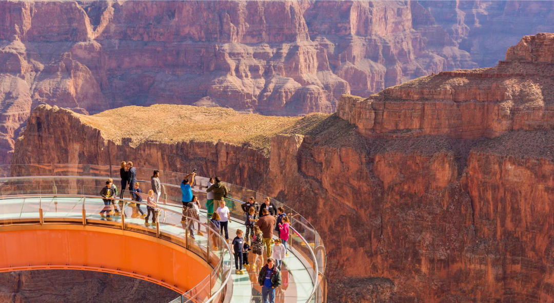 Con semejante introducción del post, sobra decir que las vistas son magníficas. Una obra de arte natural de colores terrosos que arden con la puesta de sol. Imagina que pudieras tener el privilegio de las aves y verlo desde el cielo. Impresiona ¿verdad? Desde el Skywalk podrás caminar a 1.300m de altura del cañón por una pasarela de cristal y tomar las mejores fotografías de esta maravilla. ¡No mires abajo!
