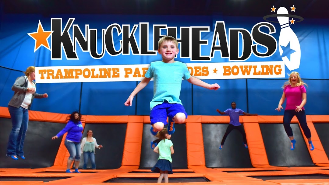 Knuckleheads es el hogar del único parque de trampolines. ¡Es perfecto para cualquier tamaño, edad y capacidad de salto! La compra de un pase de salto en el parque de trampolines les da acceso a cuatro áreas de alto vuelo: aros de básquetbol, una gran área de salto abierta, la cancha de esquivar la pelota y la bolsa de "acrobacias" BigAir personalizada de Knuckleheads.