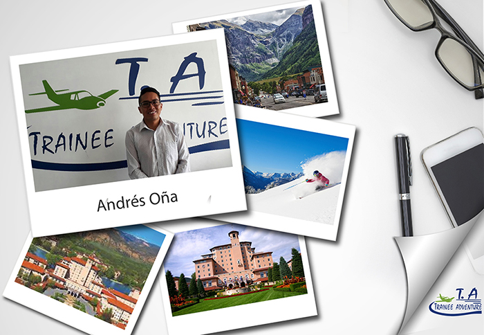 Andrés a punto de empezar su programa de pasantías profesionales 12 meses en Culinaria, Hotel The  Broadmoor, Colorado Springs – USA. Los mejores éxitos en el desarrollo de tu programa. Culinary Trainer School